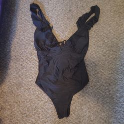 Black Lace Ruffle Bodysuit Dress Top Size S$18Henderson, NV