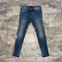 Purple Brand Blue/Grey Distressed Two-Tone Peiced Black Label Denim Jeans Limited Edition Size 34$110Las Vegas, NV