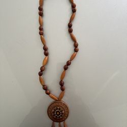 Handmade wooden beaded necklace with a carved pendant$30North Las Vegas, NV