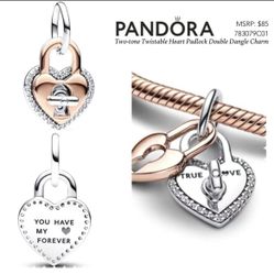 PANDORA Two-tone Twistable Heart Padlock Double Dangle Charm w/box$42Las Vegas, NV