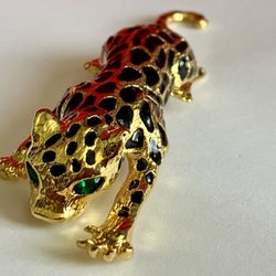 LEOPARD BLACK ENAMEL GOLD TONE BROOCH PIN GREEN STONE EYES ARTICULATED TAIL ‼️ Price Is FIRM ‼️ See More UNIQUE - RARE - DESIGNER Items Here ...$39Las Vegas, NV