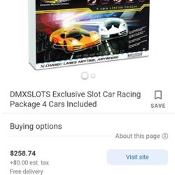 Limited Edition DMX Slots Exclusive Slot Car Racing Package Racecar Set w/4 Cars$99North Las Vegas, NV