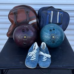 Set of 2 Bundle Vintage Brunswick bowling ball bag with 2 vintage Bonanza 300 bowling ball And Shoes$100Henderson, NV