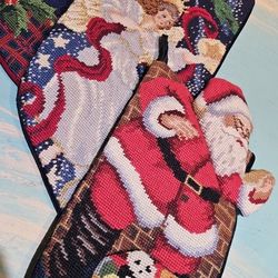 Vintage Christmas Toy Bags Needlepoint Stocking Wool Velvet Cotton Santa Set 3 $80Las Vegas, NV