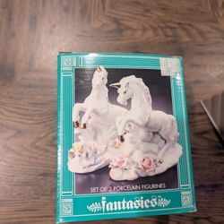 two white porcelain unicorn figurines with flower accents from the fantasies collection$25Las Vegas, NV