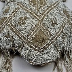 Antique Beaded Evening Bag / Purse – White Seed Bead Art Deco Vintage