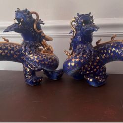 Pair Vintage Glazed Porcelain Chinese Foo Dog Feng Shui Blue & Gold Gilt Dragon$40Las Vegas, NV