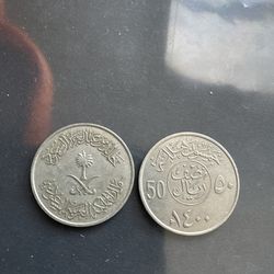 Saudia Arabia 50 halalas 1977 ,two coins rare$4Las Vegas, NV