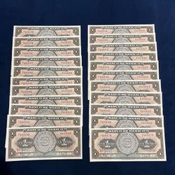 Mexican Currency (UN peso) 1970 Uncirculated Consecutive numbers.22 pieces $220Henderson, NV