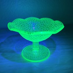 Vintage Uranium Green Depression Glass L.E. Smith By Cracky Crackle Ruffled Sherbet Sorbet Cup Bowl$30Las Vegas, NV
