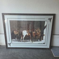 Framed Western Art Print "Three Saddled Horses" by Raymond Johnson – Signed – Large Horse Barn Scene$100Las Vegas, NV