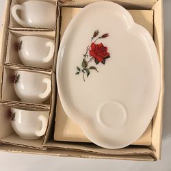 Vintage Federal Glass Rosecrest 8 Piece Snack Set 4 Cups 4 Snack Plates original box$40Henderson, NV