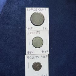 Large Cent 1845 & 2 Cents 1865 & 3 cents 1865 $130Henderson, NV