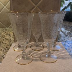 vintage Cambridge Glass iced tea tumblers in the "Rose Point" pattern, featuring delicate etched floral designs and gold trim accents.$50Las Vegas, NV