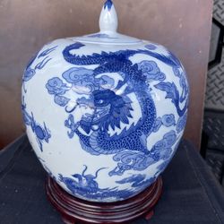 ANTIQUE CHINESE COBALT BLUE DRAGON HAND PAINTED GINGER JAR GREAT CONDITION BIG 10β Height and 10β Width .. BEST OFFER$1Las Vegas, NV
