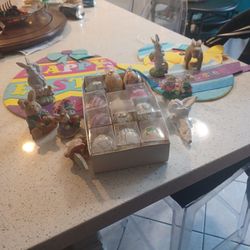 Easter decor, 12 paper mashay eggs, 8 Figurines, 2 wid$10Las Vegas, NV