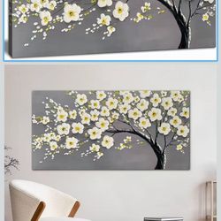 Large Flower Wall Art for Living Room Hand-Painted White Blossom Tree Wall Art Textured Floral Canvas Pai$30Las Vegas, NV