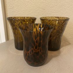 Set of 3 Hand Blown Leopard or Tortoise Shell Pattern Print Glass Brown Vases Cups Tumblers $10Las Vegas, NV