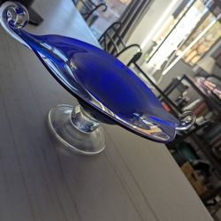 Hand Blown Cobalt Blue Glass Pedestal Centerpiece Bowl Dish Clear Glass Handles$75Henderson, NV