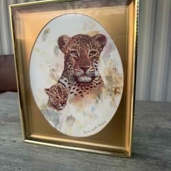 VTG Doris Scott Nelson Leopard & Cub Gold Frame Print Home Decor Wall Hanging$30Las Vegas, NV