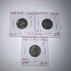 War Nickel, 35% Silver 1942,1944,1945$30Henderson, NV