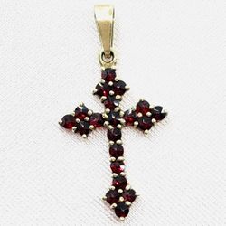 Antique Bohemian Tombac Cross Religious Garnet Pendant Necklace - Germany$160Las Vegas, NV