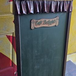 vintage wooden advertising chalkboard sign for "Café Delights very cool 59x24$60Las Vegas, NV