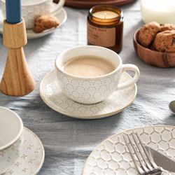 LE TAUCI Cappuccino Cups with Saucers 6 oz, Ceramic Embossment Coffee Cup for Au Lait, Double shot, Latte, Cafe Mocha, Tea, Dishwasher Safe - Set of 4$20Las Vegas, NV