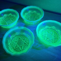 4 Antique EAPG Vaseline Uranium Opalescent Northwood National Victorian Era Glass Diamond Spearhead Bowls $280North Las Vegas, NV