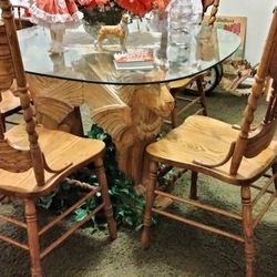 Antique Lion Table Carved Out Of One Piece Of Wood Three Lion Faces Heavy Weighs 150 Lb Glass Top Is Thick Glass Perfect For Chairs Whole Set $1,000$1,000Enterprise, NV