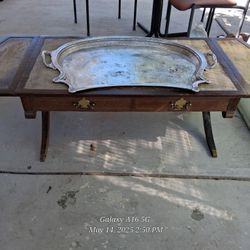Antique Drop Leaf Coffee Table With Silver Serving Tray $500Las Vegas, NV