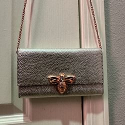 Rare Ted Baker Silver Leather Clutch Purse With Rose Gold Detachable Chain & Bee$70Las Vegas, NV