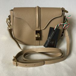Laura Di Maggio Beige Italian Leather Crossbody Adjustable Strap Clutch Handbag Purse New $89Las Vegas, NV