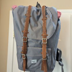 Herschel Gray Laptop Backpack Brown Leather Straps Padded Interior Cinch Top$44Las Vegas, NV