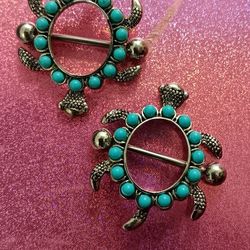 PAIR of Unique Teal Turtle Design Steel Nipple Barbells / Shields / Rings$16North Las Vegas, NV