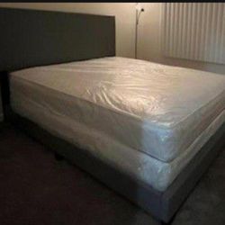 Grey Queen Size Bed Frame With Mattress And Boxspring Set Only $499 Free Delivery Same Day Delivery $499Las Vegas, NV