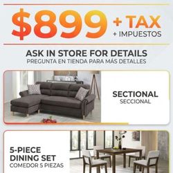 Package Deal ! Sectional , Dining Set , And Bed Frame With Mattress Size FULL $899North Las Vegas, NV