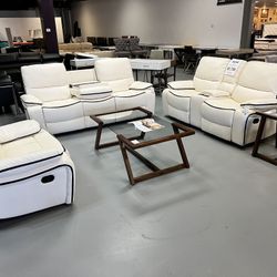 White Leather w/Black Stripes Recliner 3Pcs Living Room SET (Sofa, Loveseat, Chair) BIG SALE💥$1,750Las Vegas, NV