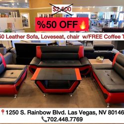 Red&Black Leather Sofa, Loveseat, Chair w/FREE Coffee Table 🔥%50 OFF🔥$1,250Las Vegas, NV