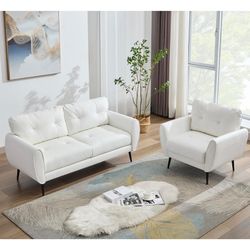 TYBOATLE Mid Century Modern White Leather Couch - 61" Loveseat, Tufted, Comfy 2 Seat Settee for Living Room or Office, Fits Small Spaces$200Las Vegas, NV