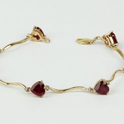 14K SOLID GOLD 7 HEART RUBY GEMSTONES DIAMOND BRACELET 6.8g ‼️ PERFECT Mother's Day Gift ‼️ See DESIGNER Items Here ... ‼️ Price Is FIRM ‼️$599Las Vegas, NV