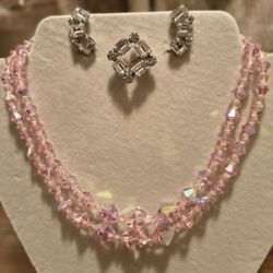 Vintage Weiss Brooch And Earrings With A Vintage Pink Aurora Borealis Double Strand Necklace $49Las Vegas, Nevada