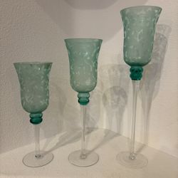 Set Of 3 Glass Candle Holders Beautiful Colors In Like New Conditions $30Las Vegas, NV