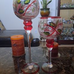 2 Christmas Glass Verre Cristal Goblet Votive Candle Holders$30Las Vegas, NV