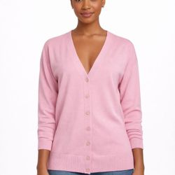 Talbots Pink V-Neck Cardigan Sweater Cotton Rayon Knit Size M$35Las Vegas, NV