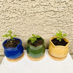 ONE PLANT IN ONE POT!!!!!! 🎁Organic sweet mint plant 🌱➕ 3.9 inch Ceramic Ice Crack Pot with Bamboo Trays price for 1️⃣SET$10Henderson, NV