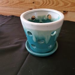 Blue small 6 inch ceramic planter pot with drainage saucer$12Henderson, NV