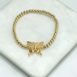 18k Gold Filled or Silver Filled Cubic Zirconia Detail in Cutout Butterfly Charm Beaded Bracelet,$30Las Vegas, NV