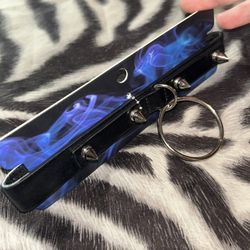 Leather Choker w/ flaming Heart & black heart at w/ chain dangle earrings vintage $16Las Vegas, NV