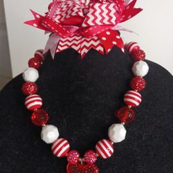 girls' red and white chunky bubblegum bead necklace with a heart pendant, often marketed as a Valentine's Day or Christmas accessory. $25North Las Vegas, NV